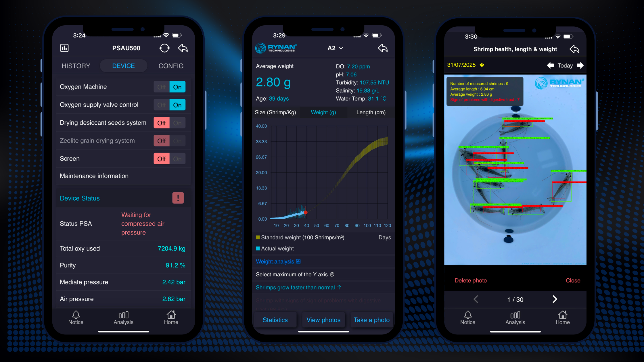 This marks a shift in mindset. TOMGOXY doesn’t just show you what’s happening, it helps you anticipate what’s next. With real-time data conveniently accessible via your phone or dashboard, you can detect gradual drops in alkalinity after rain and intervene before it affects shrimp health. You can also analyze historical trends to identify which pond is most likely to experience oxygen depletion at night, allowing you to activate the RYNAN Oxygen Generator proactively, rather than reacting after shrimp show signs of stress at the surface.